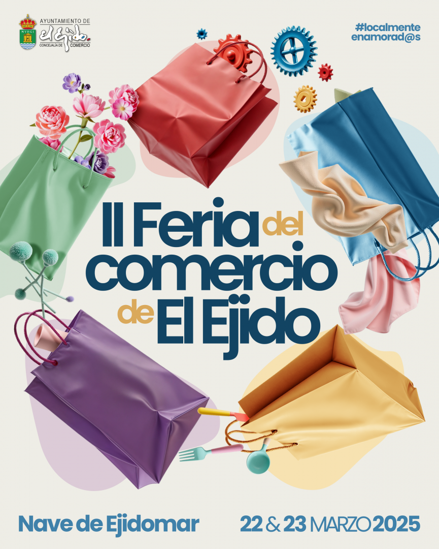 ¡No te pierdas la II Feria del Comercio de El Ejido! Una combinación de comercio local, gastronomía, música en directo, DJ, ludoteca y foodtrucks que se celebrará los días 22 y 23 de marzo en la antigua Nave de Ejidomar de 10:30 a 20:30. ¡Te esperamos!