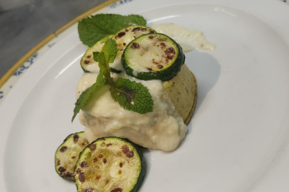 Flan de calabacín en salsa pecorino