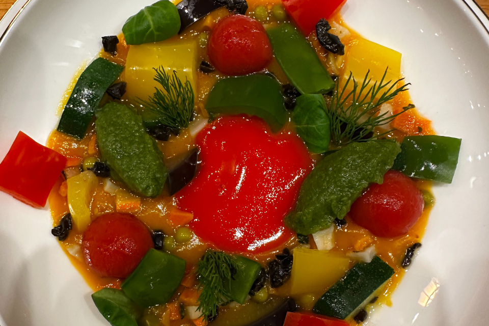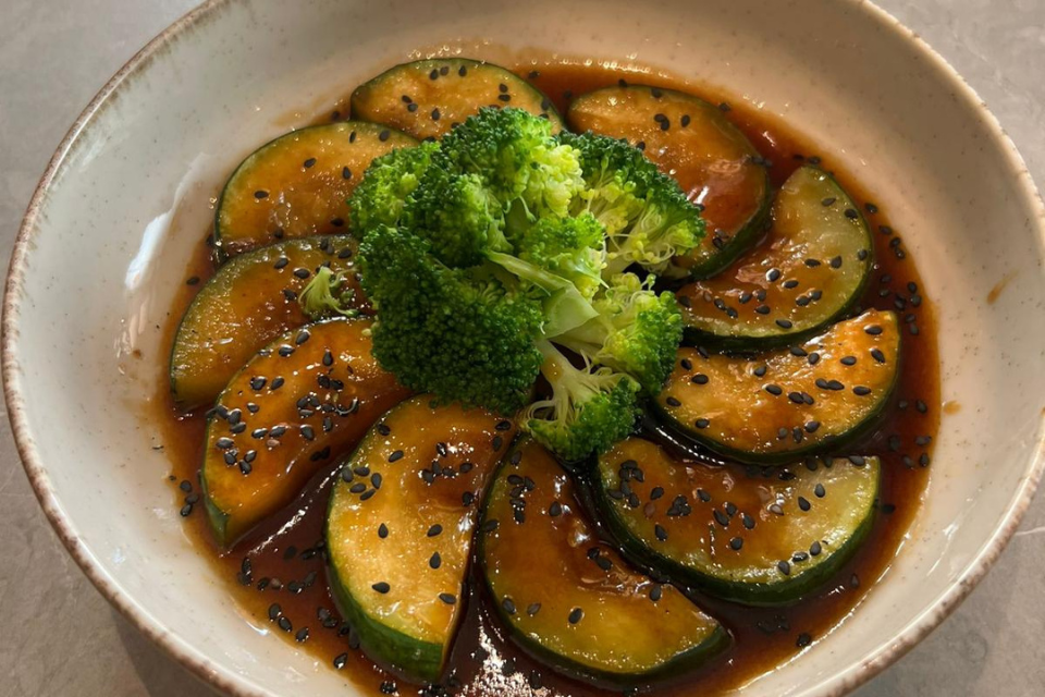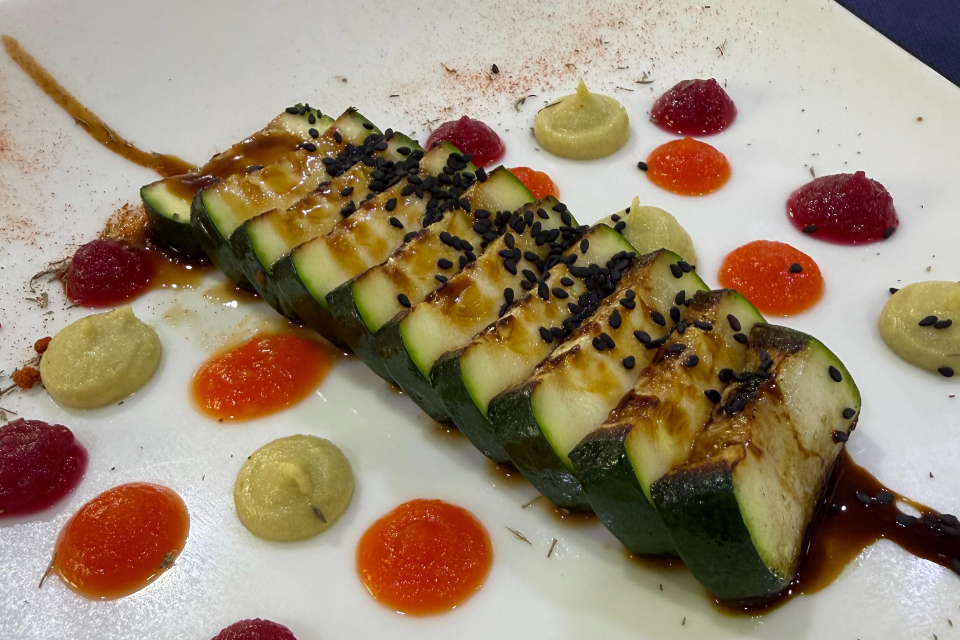 Entre invernaderos: tataki de calabacín y gelificaciones de la huerta.