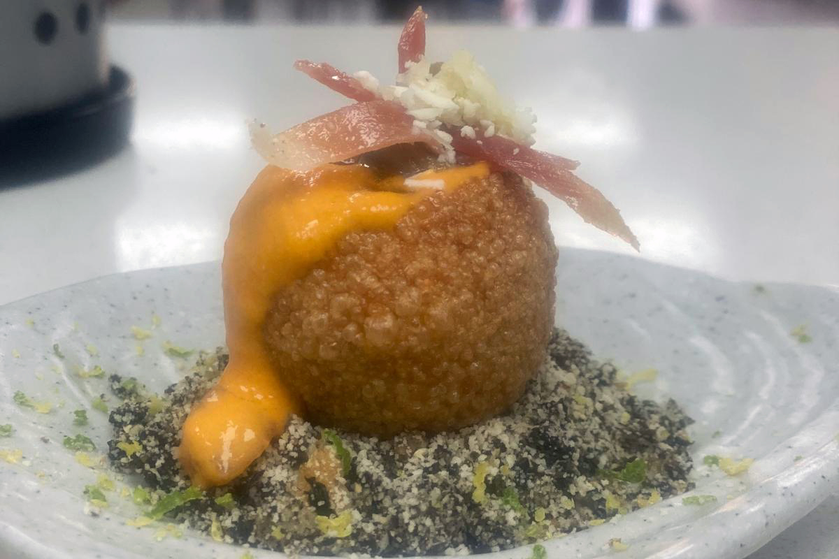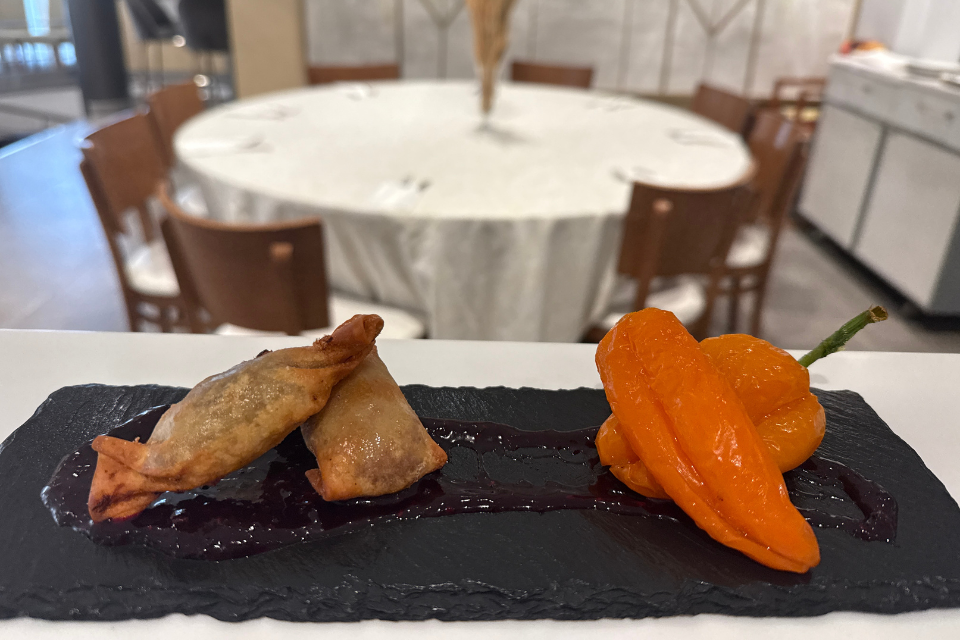 Ravioli de pato y manzana con pimiento sweet bite.